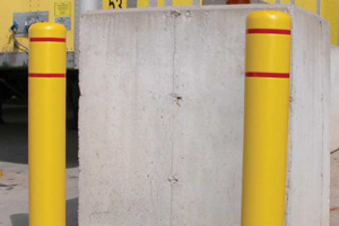 - Los protectores de bolardos Blue Giant también están disponibles con gráficos personalizados de alta calidad, como la marca corporativa.