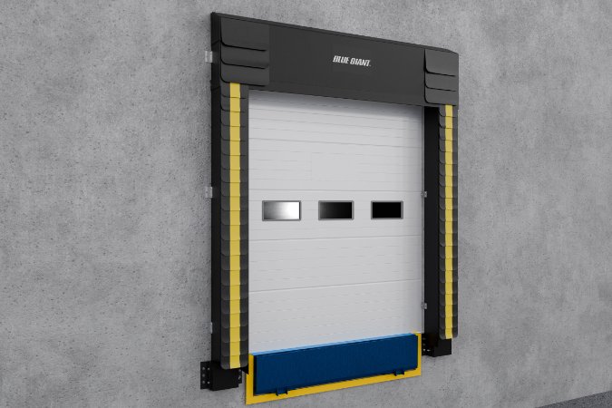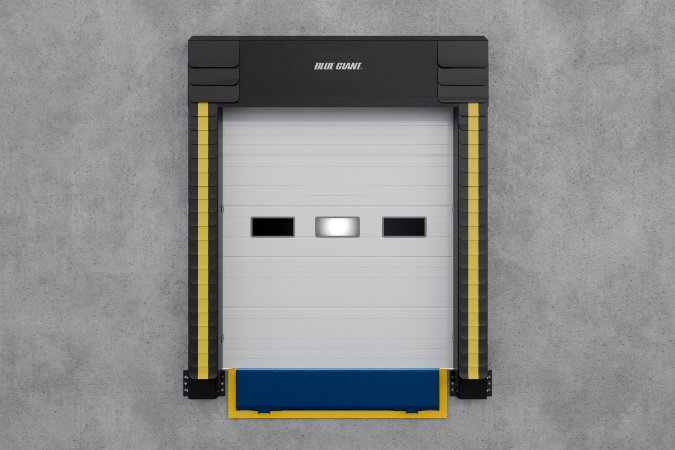 - Dos almohadillas laterales de espuma resistente actúan como un amortiguador entre el remolque y el edificio, mientras que la cortina de cabeza con peso de ancho completo se adapta a la parte superior del remolque.