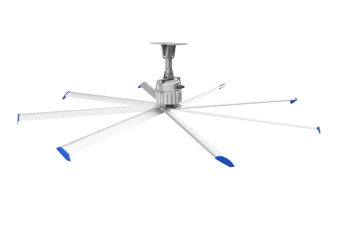 - El diseño innovador de las aspas, inspirado en la industria aeroespacial, mueve más aire con menos energía, manteniendo a los empleados cómodos y productivos en instalaciones pequeñas y medianas.