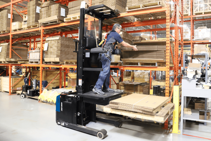 La BG2-126/144 combina el diseño compacto y la excepcional maniobrabilidad de nuestra BG1 con las características de una carretilla contrapesada. El resultado es una máquina versátil que puede utilizarse para la preparación de pedidos de nivel medio y la preparación de palets.Utilizando muchos de los mismos componentes fiables del BG1, el BG2-126/144 está disponible en dos configuraciones. El BG2-126 puede elevar al operador hasta 332 cm y alcanzar una elevación de horquilla de 327 cm. El BG2-144 puede elevar al operador hasta 380 cm y alcanzar una elevación de horquilla de 362 cm. El BG2-126/144 requiere el uso de una correa de sujeción y un arnés, e incluye un tejadillo protector y una abrazadera para palés. Ambos vehículos BG2 ofrecen velocidades de desplazamiento de hasta 7,2 km/h a nivel del suelo, con reducción de velocidad según la elevación hasta una velocidad lenta a la altura máxima.